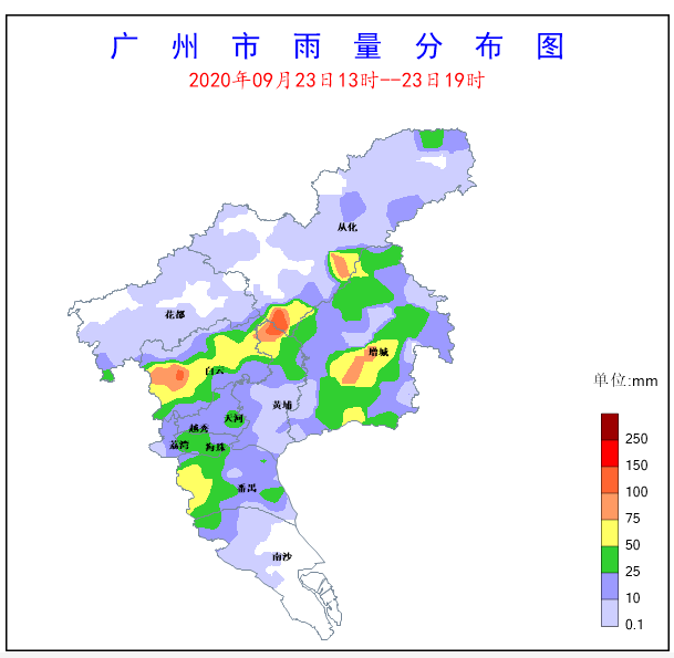 受弱冷空氣和切變線影響,23日13時(shí)至19時(shí),我市中北部地區(qū)出現(xiàn)大到暴雨局部大暴雨,增城區(qū)、黃埔區(qū)局部出現(xiàn)了7-9級(jí)陣風(fēng)。全市平均雨量16mm,共有28個(gè)測(cè)站雨量超過50mm,其中3個(gè)測(cè)站雨量超過100mm,從化區(qū)飛鵝村錄得全市最大雨量119.7mm,從化區(qū)新田村錄得最大小時(shí)雨量83.7mm(17時(shí)-18時(shí)),各區(qū)最大雨量(單位:mm):從化區(qū)太平鎮(zhèn)119.7,白云均禾街118.6,黃埔九佛街106.6,增城區(qū)朱村街90.1,番禺區(qū)大石街64.8,海珠鳳陽街47.7,天河黃村街38,荔灣多寶街28.1,越秀白云街26.3。增城區(qū)國家基準(zhǔn)站出現(xiàn)全市最大陣風(fēng)21.5m/s(9級(jí))。