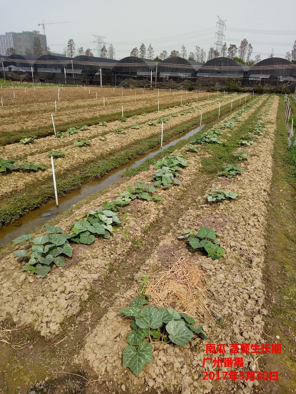 蔬菜類作物生長狀況良好:莙荙菜處于葉生長期,生長狀況良好,注意及時采收;西蘭花處于葉片生長期,生長狀況良好,注意及時追肥,注意防治菜粉蝶;南瓜處于莖蔓生長期,生長狀況良好,注意及時追肥;油麥菜處于葉生長期,生長狀況良好。