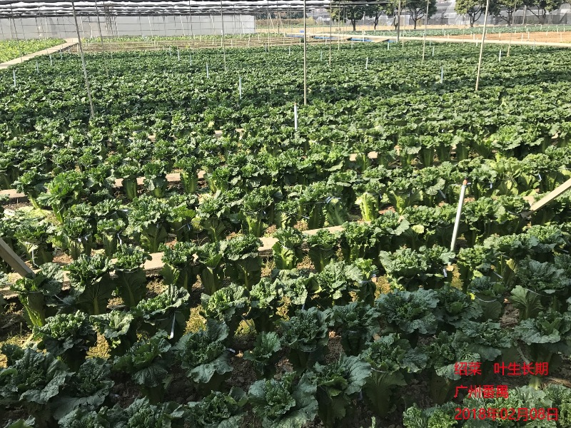 蔬菜類作物生長狀況良好:菜心處于葉生長期,生長狀況良好,注意及時采收;紹菜處于葉生長期,生長狀況良好,注意防治跳甲;椰菜處于葉生長期,生長狀況良好,注意及時追肥;蘭豆處于開花座果期,注意及時采摘。