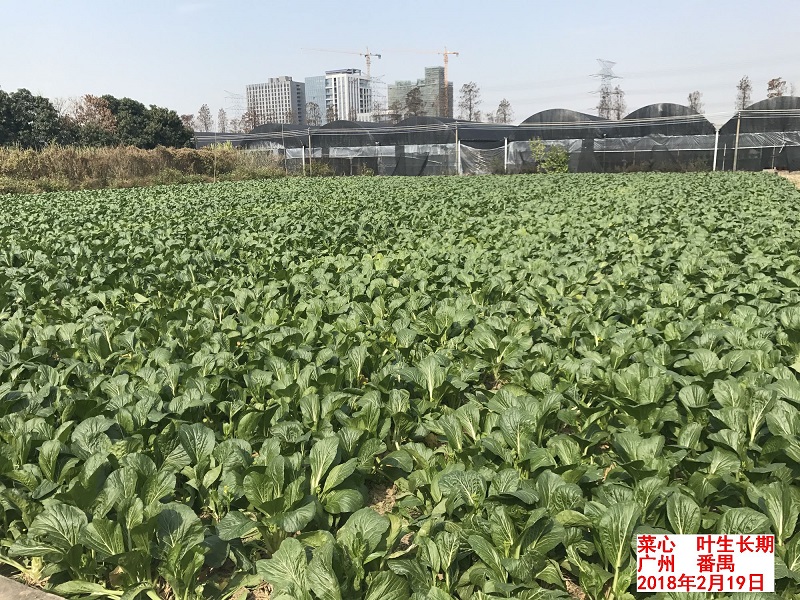 蔬菜類作物生長狀況良好:菜心處于葉生長期,生長狀況良好,注意及時采收;紹菜處于葉生長期,生長狀況良好,注意防治跳甲;椰菜處于包心生長期,生長狀況良好,注意及時追肥;蘭豆處于開花座果期,注意及時采摘。