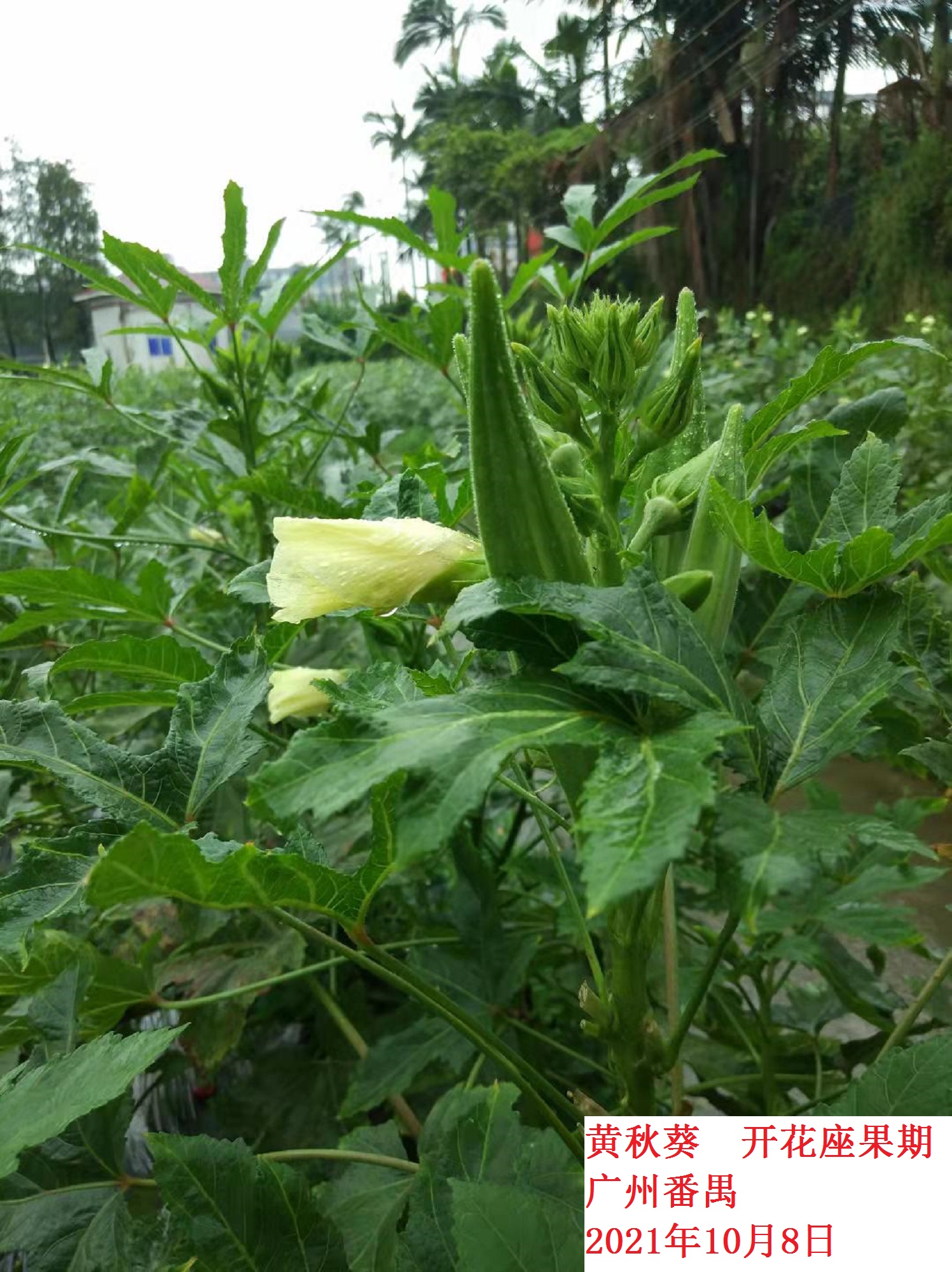 本旬我區(qū)蔬菜類作物生長狀況一般,南瓜處于開花座果期,黃秋葵處于開花座果期,松花菜處于葉生長期,西蘭花處于苗期。